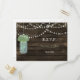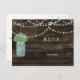 Bois de Barnwood rustique, lumières à cordes pendantes avec des fleurs de sauge dans un pot de mason mariage RSVP Cartes postales. Produits correspondants également disponibles.