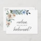 Invitation Carte Postale Be My Bridesmaid Dusty Blue Beige Fleurs Boho Inv