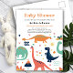 Invitation Carte Postale Bébé vert mignon orange Baby shower garçon Dinosau