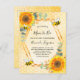 Elégante, amusante, invitation de baby shower d'été rustique. Un arrière - plan jaune avec un motif de nid d'abeille. Avec un cadre géométrique en faux or. Décoré de tournesols jaunes et oranges, de verdure d'eucalyptus et de jolies bourdons. Avec le texte : Maman to Bee et le nom de la momie à être sur le devant écrit avec un script de style manuscrit moderne. Lettres noires. Retour : motif de nid d'abeille jaune et une abeille souriante. Conseil : Si vous ne voulez pas qu'il ressemble à une carte postale, cliquez sur customiser, allez à l'arrière et retirez le séparateur et le timbre postal.
