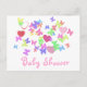 Invitation Carte Postale belle baby shower papillons roses et coeurs