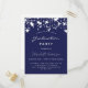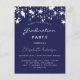 Une invitation glamour pour une fête de fin d'études en 2023 (ou toute année) pour lui et elle. Un arrière - plan bleu marine décoré d'étoiles blanches. Personnalisez et ajoutez un nom et des détails du parti. Le texte Graduation et le nom sont écrits avec un script de style à la main moderne. Texte de couleur blanche.