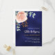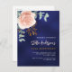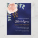Un arrière - plan bleu marine. La couleur bleue est inégale. Décoré d'un grand or rose et rose vif floral, fleur rose et feuilles d'eucalyptus vert couleur eau, sprigs, verdure et un faux sprig d'or. Personnalisez et ajoutez votre nom et les détails de votre fête.