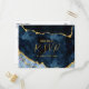 Invitation Carte Postale Bleu marine feuille d'or Agate choix de repas RSVP