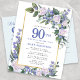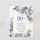 Invitation Carte Postale Blue White Gold Floral 90e fête d'anniversaire