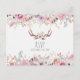 Invitation Carte Postale Boho Chic Fleurs Cerf Antlers Mariage rustique RSV