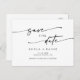 Ce mariage chic noir et blanc sauve la carte postale invitation date est parfait pour un mariage minimaliste. Le design bohème moderne en noir et blanc présente une calligraphie rustique simple avec un style unique mais classique. Parfait pour toute saison : printemps, été, automne ou hiver. Personnalisez votre enregistrement de la carte postale de date avec vos noms, date mariage, emplacement et adresse du site Web du mariage.