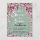 Vintage et romantique cadre botanique violet floral sur minty arrière - plan Douche nuptiale invitation avec titre scripté Prenons douche à la mariée. Excellent choix pour le jardin et les mariages à thème rustique.