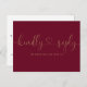Invitation Carte Postale Bourgogne Et Gold Heart Script Demande de Chanson