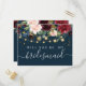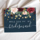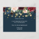 Invitation Carte Postale Bourgogne rustique Bleu marine & Fleurs rouges &