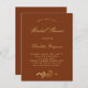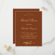 Arrière - plan de couleur rouille, orange brûlé. Personnalisez et ajoutez vos noms et les détails. Texte doré. Décoré avec un faux tourbillon d'or, sprig. Retour : arrière - plan orange brûlé.
