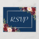 Burgundy Floral Silver Grey Marine Blue Wedding RSVP Répondre Carte postale. (1) Pour plus de personnalisation, cliquez sur le lien "customiser plus loin" et utilisez notre outil de conception pour modifier ce modèle. (2) Si vous avez besoin d'aide ou d'articles correspondants, veuillez me contacter.