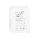 Ce calendrier moderne chic noir et blanc, à l'exception de la carte postale date, est parfait pour un mariage simple. Le design boho minimaliste présente une typographie bohème rustique unique et élégante dans un noir et blanc épuré minimal. Personnalisez l'avant de la carte postale avec vos noms, date, emplacement du mariage et le calendrier du mois où vous vous mariez. Déplacez le coeur au-dessus de votre date en ouvrant la vue design : sur le côté droit de la page, cliquez sur "personnaliser ce modèle", puis "customiser plus loin". Personnalisez le dos de la carte postale avec une photo et un lien vers votre site Web mariage au dos.
