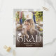 Invitation de la fête de remise de diplômes moderne (lycée ou collège) avec écriture décontractée blanche et deux photos, avec une couche de couleur chaude. Nom et script "Graduate" texte sur le devant et invitation avec détails de la partie sur le dos.