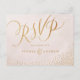 Parties scintillant de flamme rose or main lettering calligraphie rsvp design et dots d'or rose confetti sur pastel rose pastel aquarelle arrière - plan, joli effet de parties scintillant d'or rose métallique mielleux, moderne, chic, élégant et classe, parfait pour mariage vintage ou mariage de printemps. Personnalisez votre propre carte postale RSVP pour votre ensemble de faire-part de mariage. Voir toutes les pièces correspondantes dans cette collection de calligraphie de parties scintillant d'or rose rousse ci-dessous.