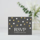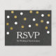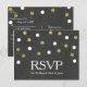 Carton de réponse pour fête avec tableau craie et confettis or et blanc. Articles assortis disponibles.