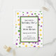Considérez cette carte postale d'invitation avec une police ludique à pois pour Mardi Gras pour votre prochaine fête d'anniversaire ! Ce modèle de fête d'anniversaire présente des pois en jaune, violet et vert. Cette carte postale d'invitation avec une police ludique à pois pour Mardi Gras est parfaite pour votre prochaine célébration d'anniversaire avec vos amis et votre famille. Vous pouvez modifier la police, la couleur du texte et effectuer d'autres modifications personnalisées en utilisant les options d'outils de personnalisation et de conception ci-dessus. Découvrez Mouse and Marker pour plus de papeterie de fête d'anniversaire et de fournitures de fête que vous pouvez personnaliser !