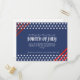 Invitation vos proches à une fête festive du 4 juillet avec cette carte d'invitation frappante. Le design comporte un arrière - plan bleu marine audacieux avec des bandes rouges formant un design triangulaire aux coins supérieur droit et inférieur gauche. Trois lignes d'étoiles blanches ornent le haut et le bas, créant un design puissant inspiré du drapeau américain. La pièce centrale peut être customisée avec les détails de votre fête, invitant les invités à honorer les libertés que nous chérissons tout en profitant de la fête de l'indépendance. #StarSpangledFreedomParty #NavyBlueInvite #RedStripedDesign #WhiteStarAccents #CustomizableInvitation #PatrioticCelebration