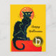 INVITATION CARTE POSTALE CHAT NOIR HALLOWEEN PARTY MONOGRAM