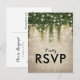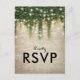 Cartes de réponse de mariage de conte de fées magique avec un fond de mur de briques de pierre rustique, vigne de lierre vert avec des lumières scintillantes, et un modèle de réponse moderne.