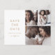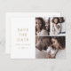 Cette typographie or chic 3 photo collage enregistrer la date carte postale est parfait pour un mariage moderne. Le design simple présente une typographie classique minimaliste d'or et de blanc, dans un style boho rustique. Personnalisable dans n'importe quelle couleur. Gardez le design minimal et élégant, en l'état, ou personnalisez-le en ajoutant vos propres graphiques et artwork.