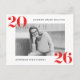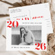Célébrez votre réussite avec ces cartes d'invitation modernes et audacieuses pour une fête de fin d'études 2025, dotées d'un design élégant avec votre photo horizontale encadrée de blanc et d'un lettrage rouge gras « 2025 » dans les coins supérieur gauche et inférieur droit. Personnalisez le recto avec votre nom et votre école, tandis que le verso comprend les détails de votre fête de fin d'études et l'adresse de retour pour une invitation élégante et sans tracas. Parfaites pour les diplômés du lycée ou de l'université, ces cartes postales de fin d'études personnalisées facilitent le partage de votre jour spécial avec vos amis et votre famille.