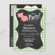 Invitation Carte Postale Cochon ; En vichy vert