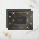 Invitation Carte Postale Coeurs noir et or élégant RSVP