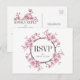 Invitation Carte Postale Couronne de fleurs de cerisier rose pour mariage R