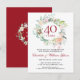 Invitation Carte Postale Couronne florale rubis pour le 40e anniversaire de