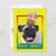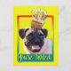 Invitation vos invités avec cette carte de voeux de chien Carlin fantaisiste. Avec un cupcake équilibré sur sa tête, ce design ne manquera pas d'apporter un sourire et des rires ! BTW, Cette conception a plusieurs versions, avec différentes couleurs arrière - plans. Il existe aussi une version Happy Birthday.
