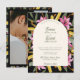 Dark Blush Pink Lily Photo Arched Wedding Invitation Postcard | Romantic Floral Wedding Invite with Custom Photo Back.