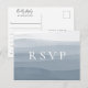Élégantes nuances de fond ombré à l'aquarelle bleue, faire-part de mariage rsvp avec demande de chanson sur carte postale. Personnaliser le texte, personnaliser le style de police, la couleur et la taille.