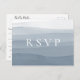 Élégantes nuances de fond ombré à dégradé de teinture à l'aquarelle bleue, carte de réponse de mariage avec demande de chanson. Personnaliser le texte, personnaliser le style de police, la couleur et la taille.