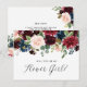 Invitation Carte Postale Demoiselle d'honneur Fleurs Burgundy et Bleu
