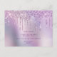 Ce design d'invitation moderne présente une texture holographique de parties scintillant à goutte faux violet et une police calligraphique élégante.