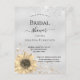 Une douche moderne, élégante et nuptiale. Un faux arrière - plan métallique à l'aspect argenté décoré de faux or et d'argent parties scintillant poussière et un tournesol rustique. Personnalisez et ajoutez un nom et des détails du parti. Lettres de couleur noire. Dos : arrière - plan faux argenté. Conception de carte postale. Conseil : Si vous ne voulez pas qu'il ressemble à une carte postale, cliquez sur customiser, allez à l'arrière et retirez le séparateur et le timbre postal.