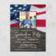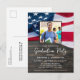 Célébrez la réussite de votre diplômé avec nos invitations patriotiques à la fête de remise des diplômes. Présentant un design moderne avec du bois rustique et le drapeau américain en rouge, blanc et bleu, ces invitations sont parfaites pour les diplômés du lycée, du collège ou de l'université. Que votre diplômé soit militaire ou non, ces invitations sont une excellente façon de montrer votre soutien et d'honorer leur accomplissement. Utilisez-les pour la famille et les amis invitations à une fête joyeuse et de mettre en valeur votre fierté dans la classe. DROIT D'AUTEUR © 2023 Judy Burrows, Black Dog Art - Tous droits réservés. Drapeau américain patriotique Photo personnalisée Graduation militaire Invitation Carte postale