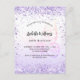 Pour une soirée élégante de 40ème anniversaire (ou tout âge). Un arrière - plan chic, blanc et violet. Décoré de parties scintillant violette, de mousseux et d'un grand papillon. Personnalisez et ajoutez un nom et des détails du parti. Le nom est écrit avec un script de style manuscrit