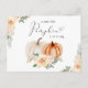 Invitation Carte Postale Elégant Baby shower Citrouille Floral Aquarelle