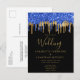 Invitation Carte Postale Elégant Black Blue Gold Parties scintillant Maria