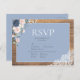 Moderne et tendance, cette conception de réponse à une invitation de mariage rustique présente un arrangement floral aquarelle bleu poussiéreux et rose blush, une fausse dentelle française d'Alençon, avec une élégante boîte de texte bleu poussiéreux sur un faux bois de grange au miel. Pour supprimer les choix de repas, nous avons créé une vidéo explicative pour vous ici : https://youtu.be/ZGpeldQgxoE Fait partie d'une suite de mariage que nous espérons que vous aimerez autant que nous : https://www.zazzle.com/collections/elegant_dusty_blue_blush_rustic_wood_lace_script-119859156422738190 Copyright Elegant Invites, tous droits réservés.