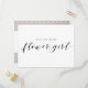 Demandez au plus jeune membre de votre cortège de demoiselles d'honneur de se joindre à vous en ce grand jour avec cette Carte Postale Élégant Dentelle Rustique Veux-Tu Être Ma Demoiselle d'Honneur. Ce design présente un délicat motif de dentelle florale blanche sur fond gris clair. Parfait pour les mariages rustiques en grange, les thèmes bohèmes chic et les cortèges de demoiselles d'honneur vintage.
