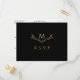 Invitation Carte Postale Elégant Noir & Or Monogramme Wreath Wedding RSVP
