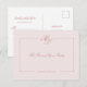 Invitation Carte Postale Élégant Rose de monogramme Blush Script Mariage Ré