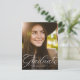 Célébrez vos invités de grade et d'invitation avec cette carte postale verticale classique de graduation en une photo qui comprend un élégant script de calligraphie moderne sur le devant et un dos personnalisable pour les détails de votre fête.