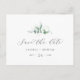 Cette élégante verdure horizontale sauver la carte postale date est parfait pour un simple mariage. L'élégant design moderne présente un agencement botanique naturel d'eucalyptus, de feuilles et de plantes avec un accent subtil de lave-linge vert menthe.