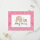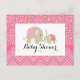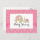 Invitation Carte Postale Eléphant de Bohême Rose et Baby shower Chevron