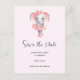 Enregistrez la carte postale de date avec une adorable illustration. Un éléphant gris ceint d'un tutu rose et des fleurs dansant le ballet, en pointe.