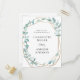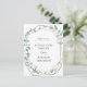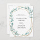 Carte de vœux de mariage moderne et élégante en blanc, vert, or (imitation), design eucalyptus. Parfait en période de Covid19, si vous célébrez seulement avec la famille proche mais que vous souhaitez faire participer vos amis à votre cérémonie de mariage via un live-stream. Éditez votre produit en quelques minutes. Via "personnaliser davantage", vous pouvez modifier la police/taille/couleur et la position.